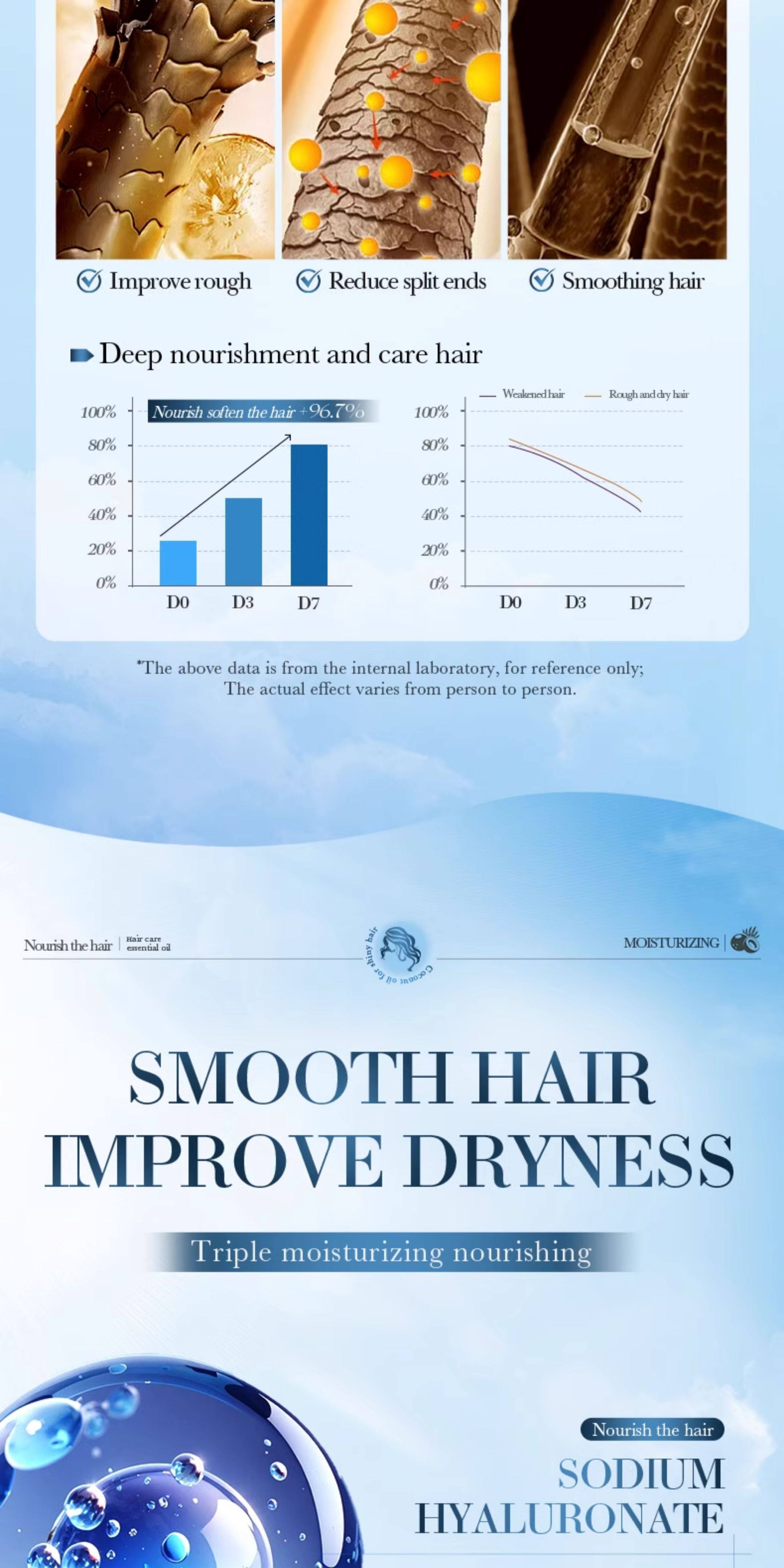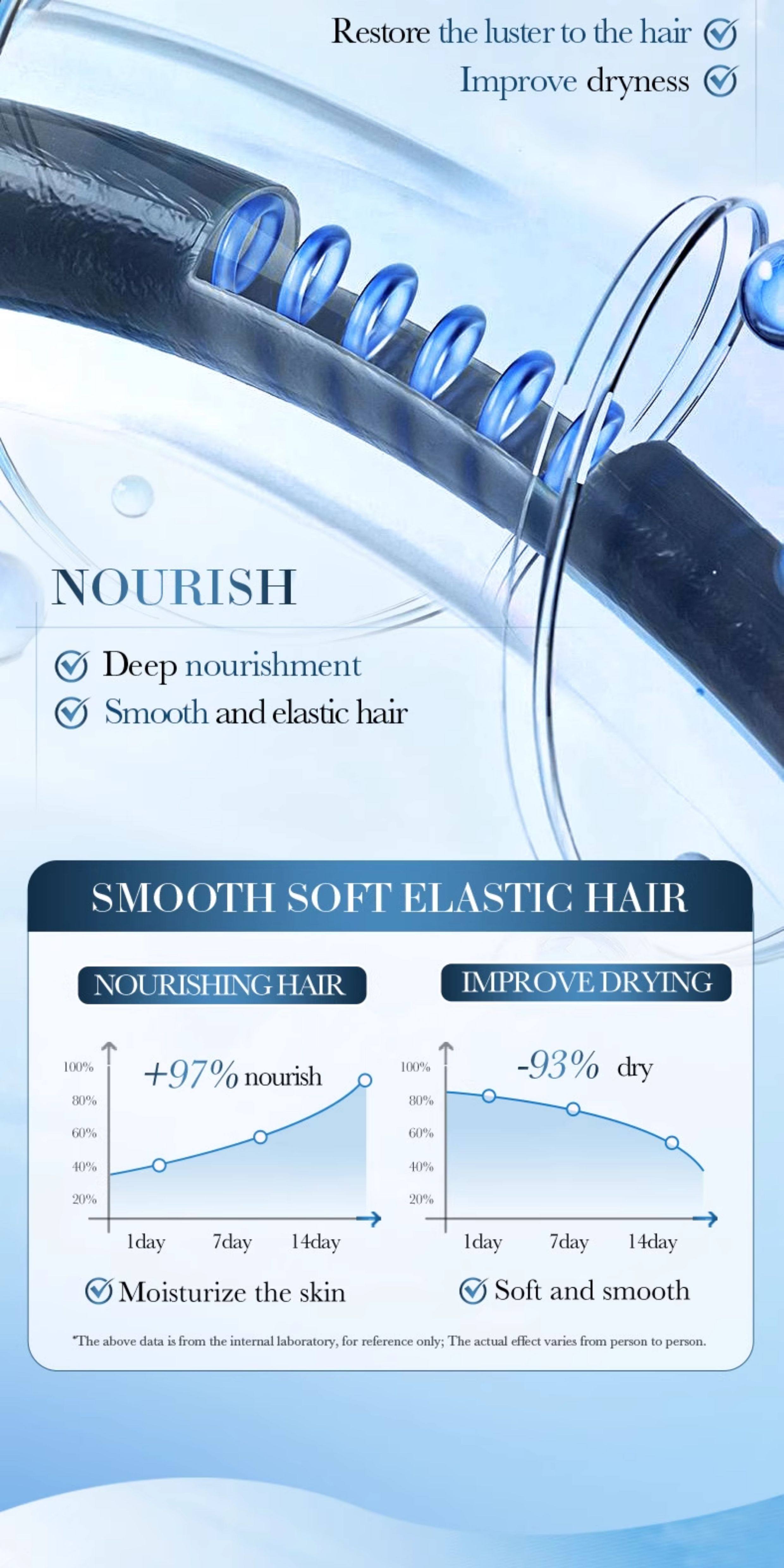 Smoothing: Reduces frizz and enhances hair smoothness